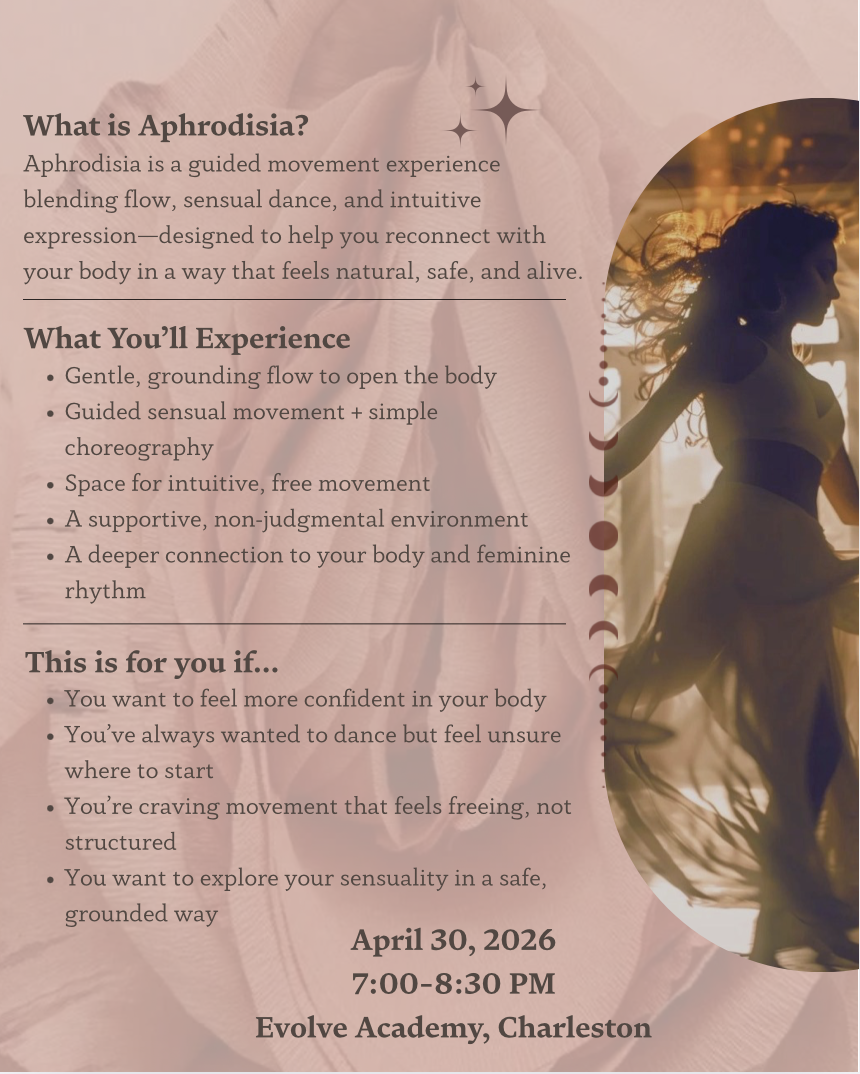 Aphrodisia is rooted in the understanding that movement can be medicine—that when we allow ourselves to feel, to move, and to be seen in a safe and intentional space, something begins to shift. This is a space to reconnect with your feminine energy, your intuition, and the parts of yourself that may have been quieted or pushed aside.
